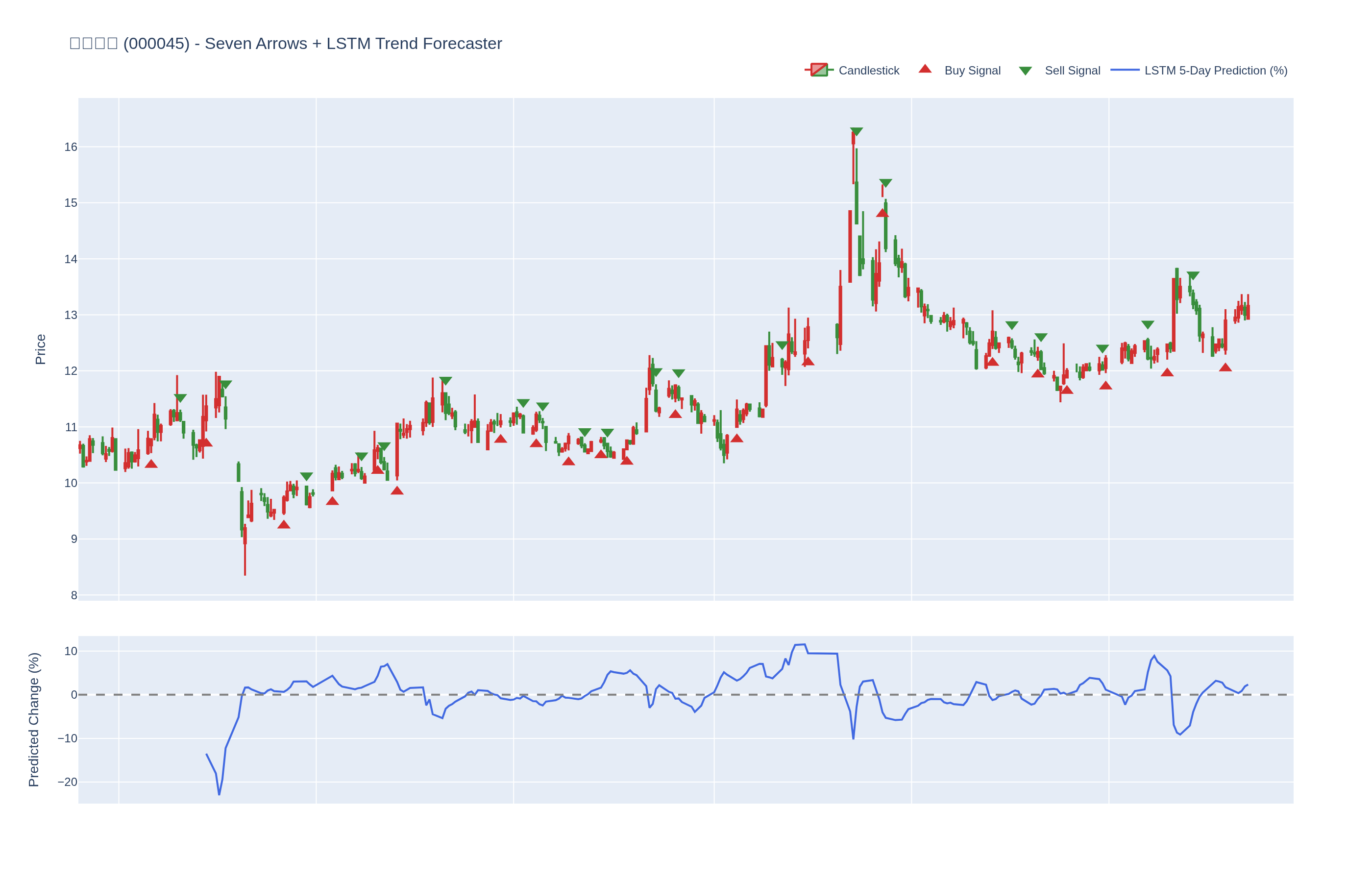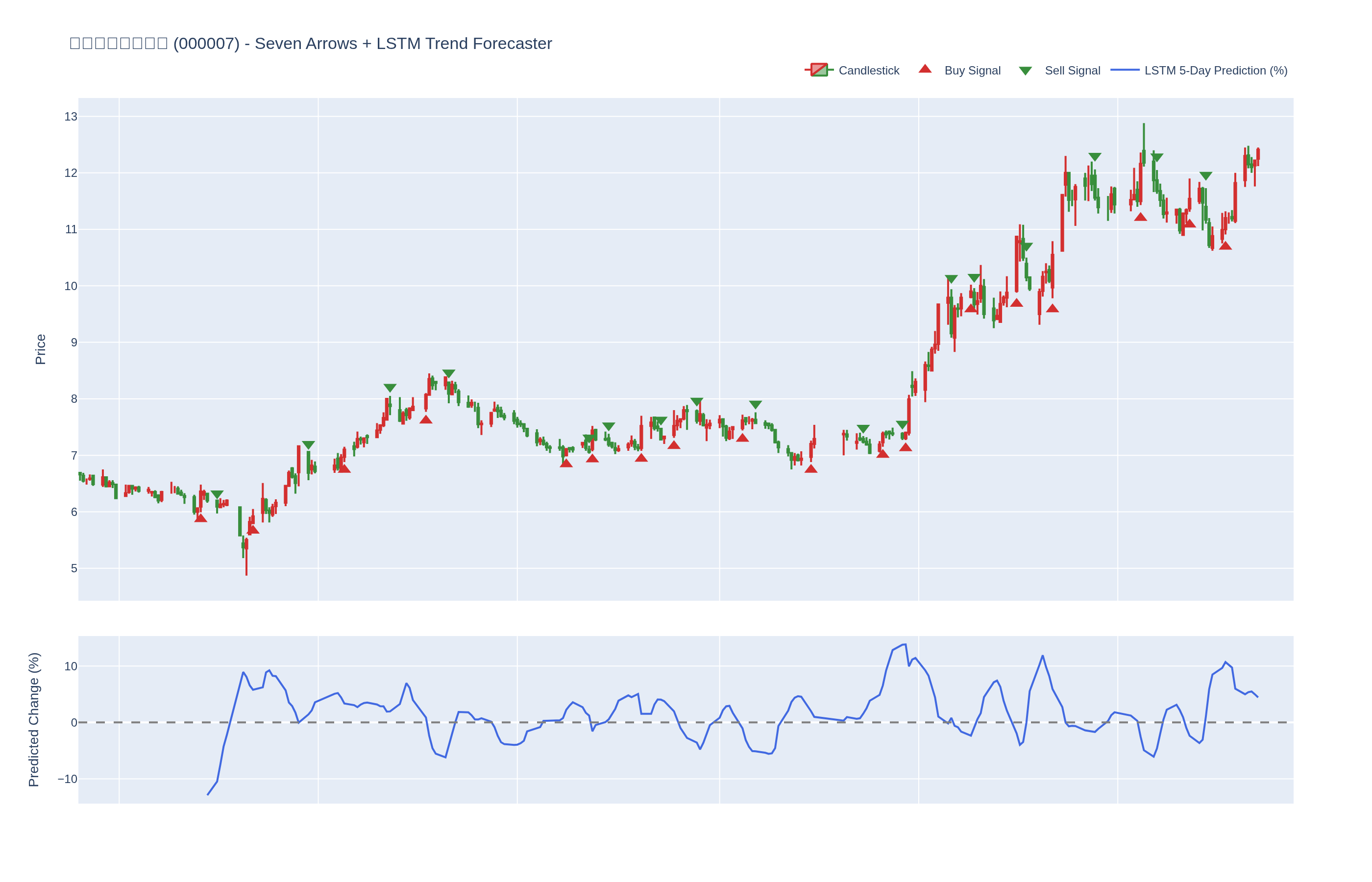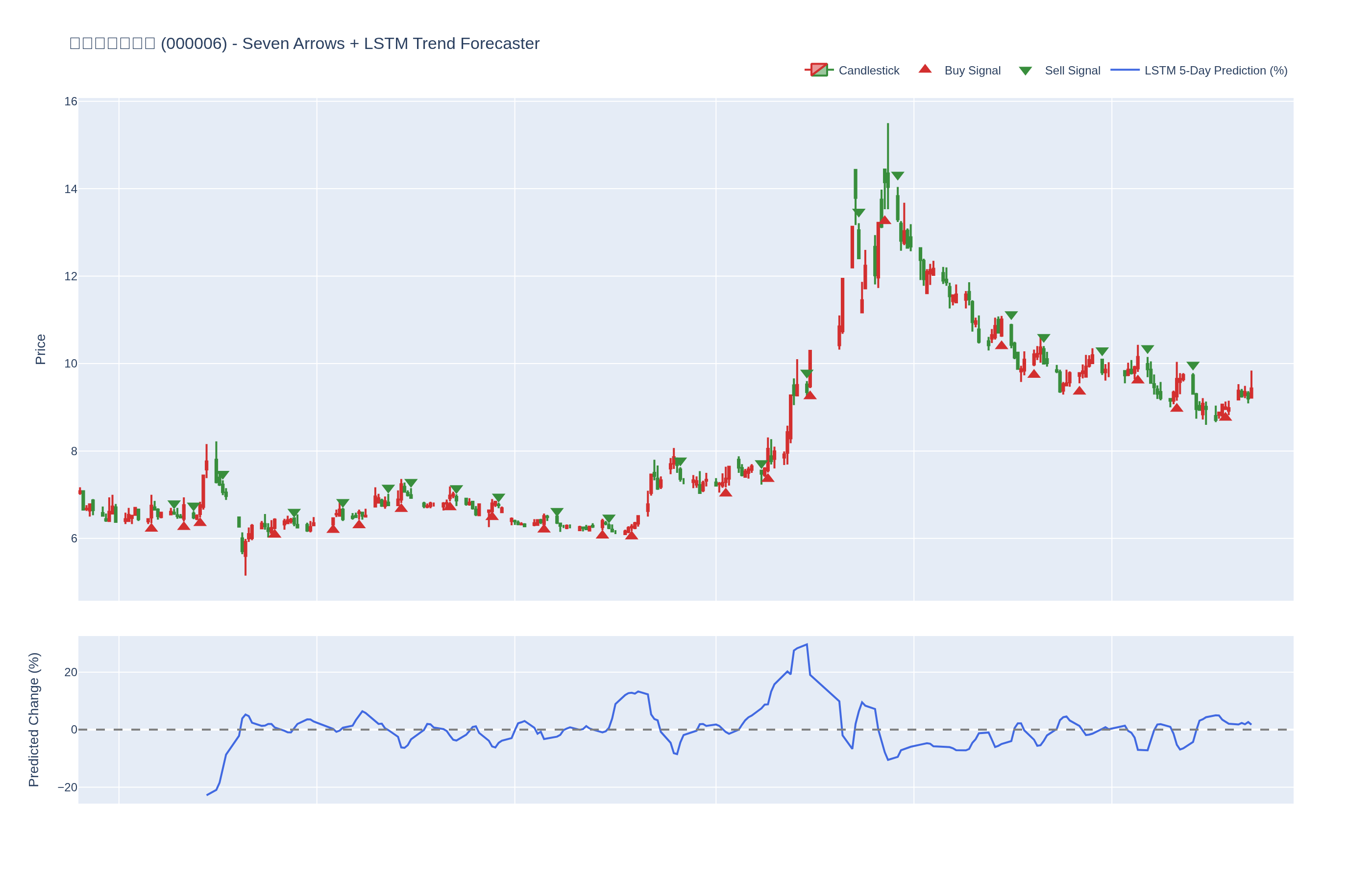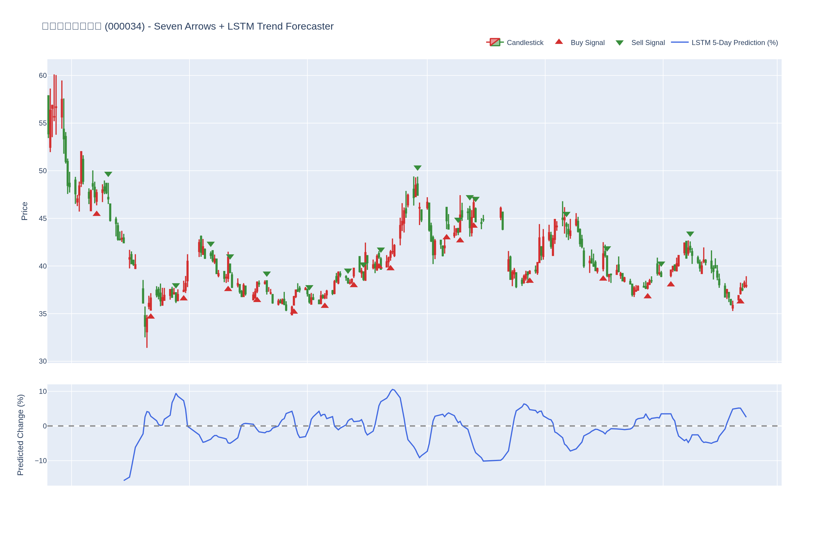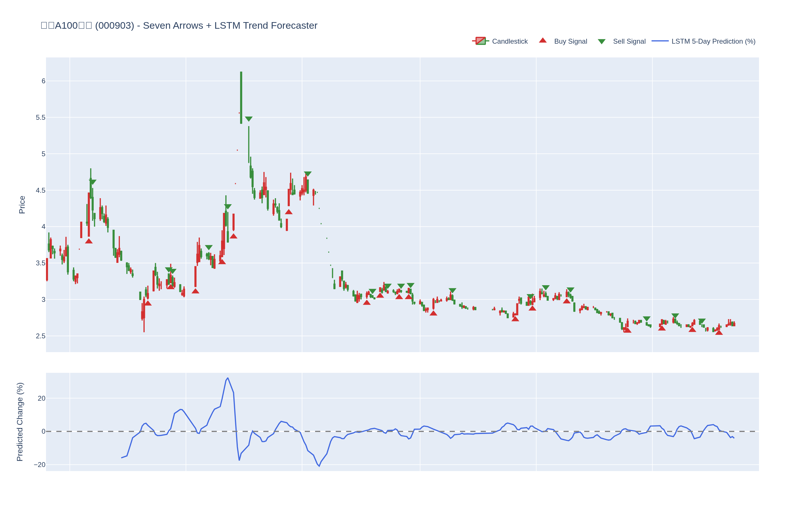 卖出 (Sell): ≤3 向上箭头 或 LSTM 预测未来价格 下跌 (≤0%)