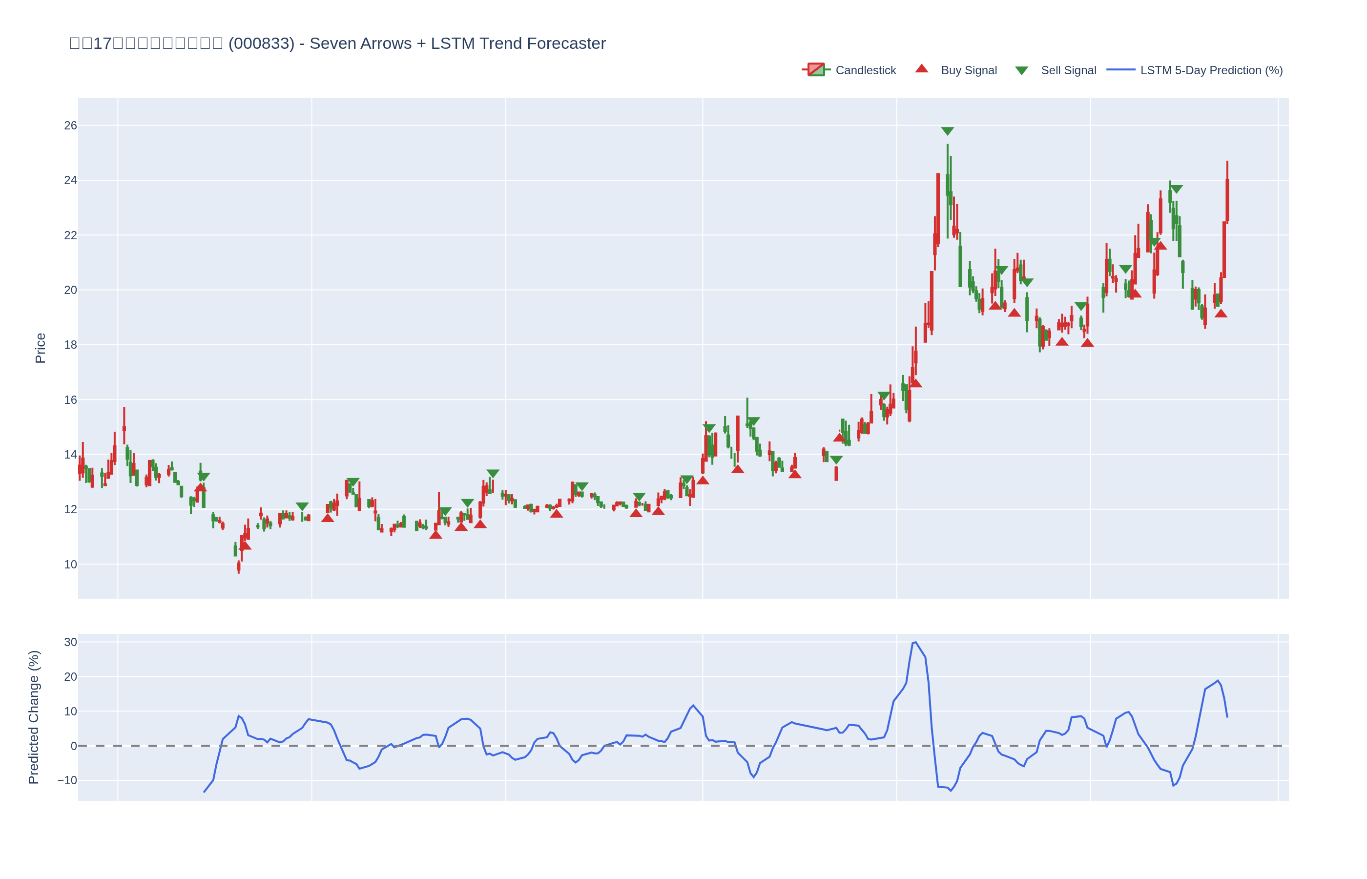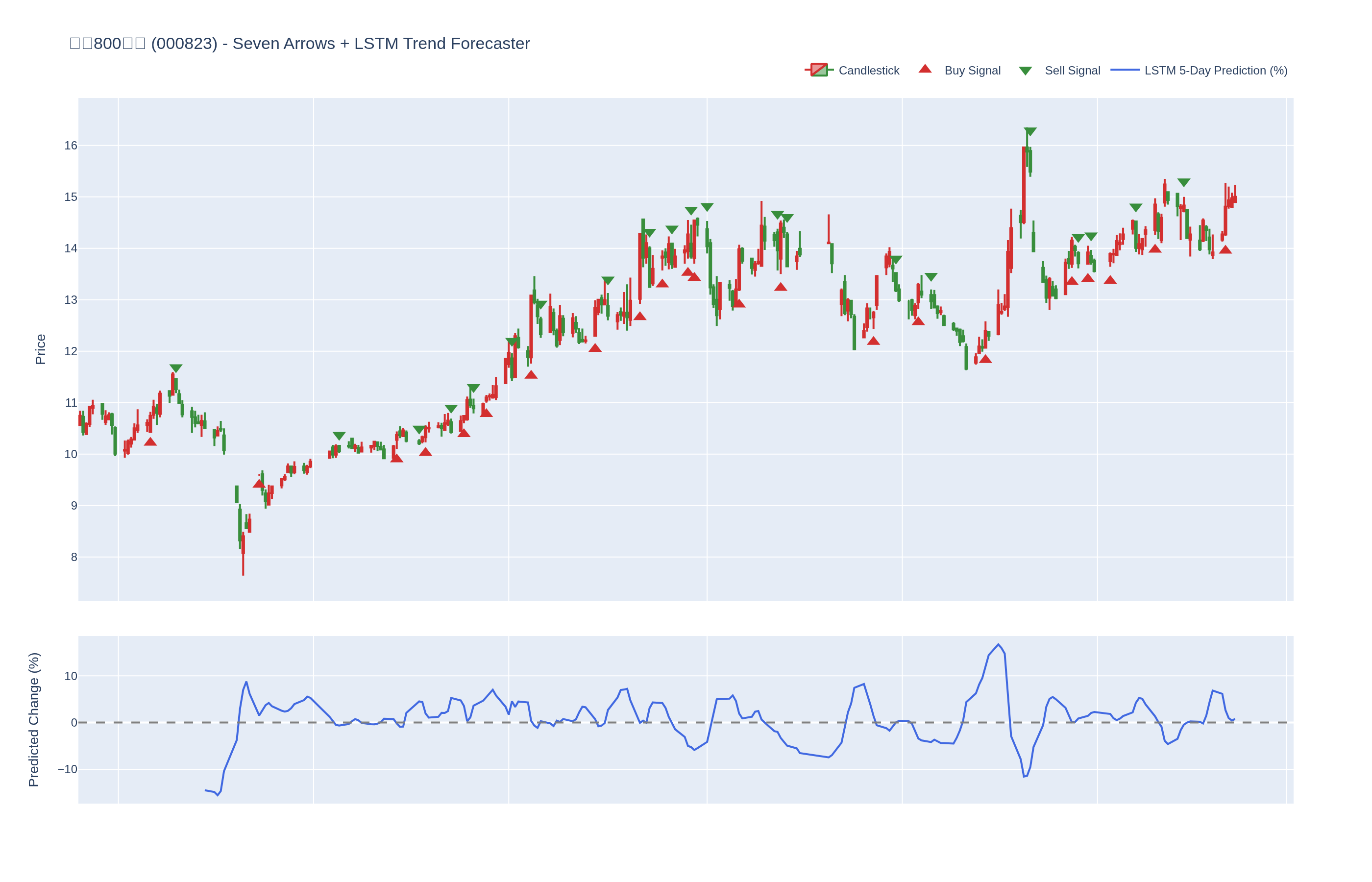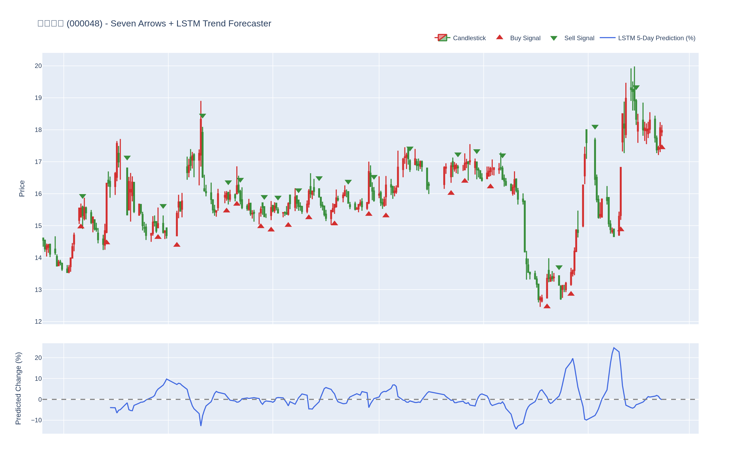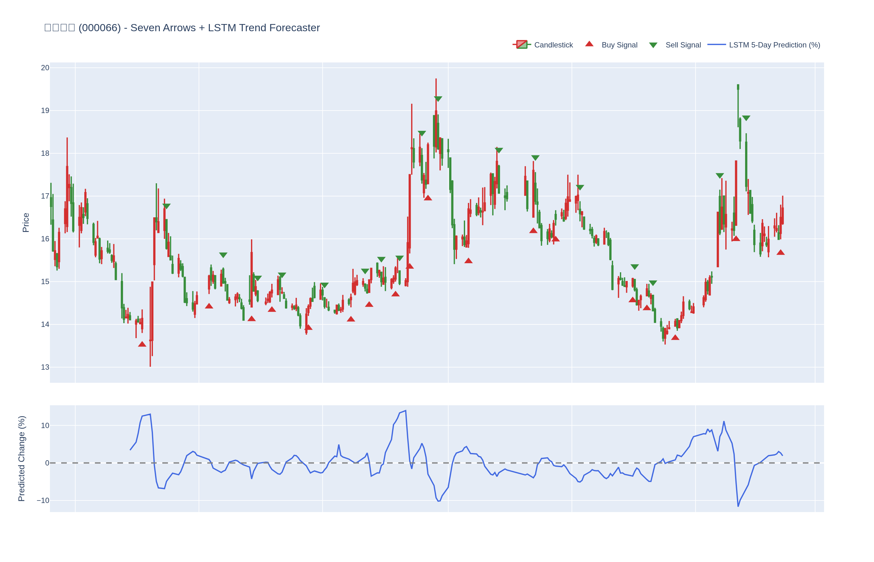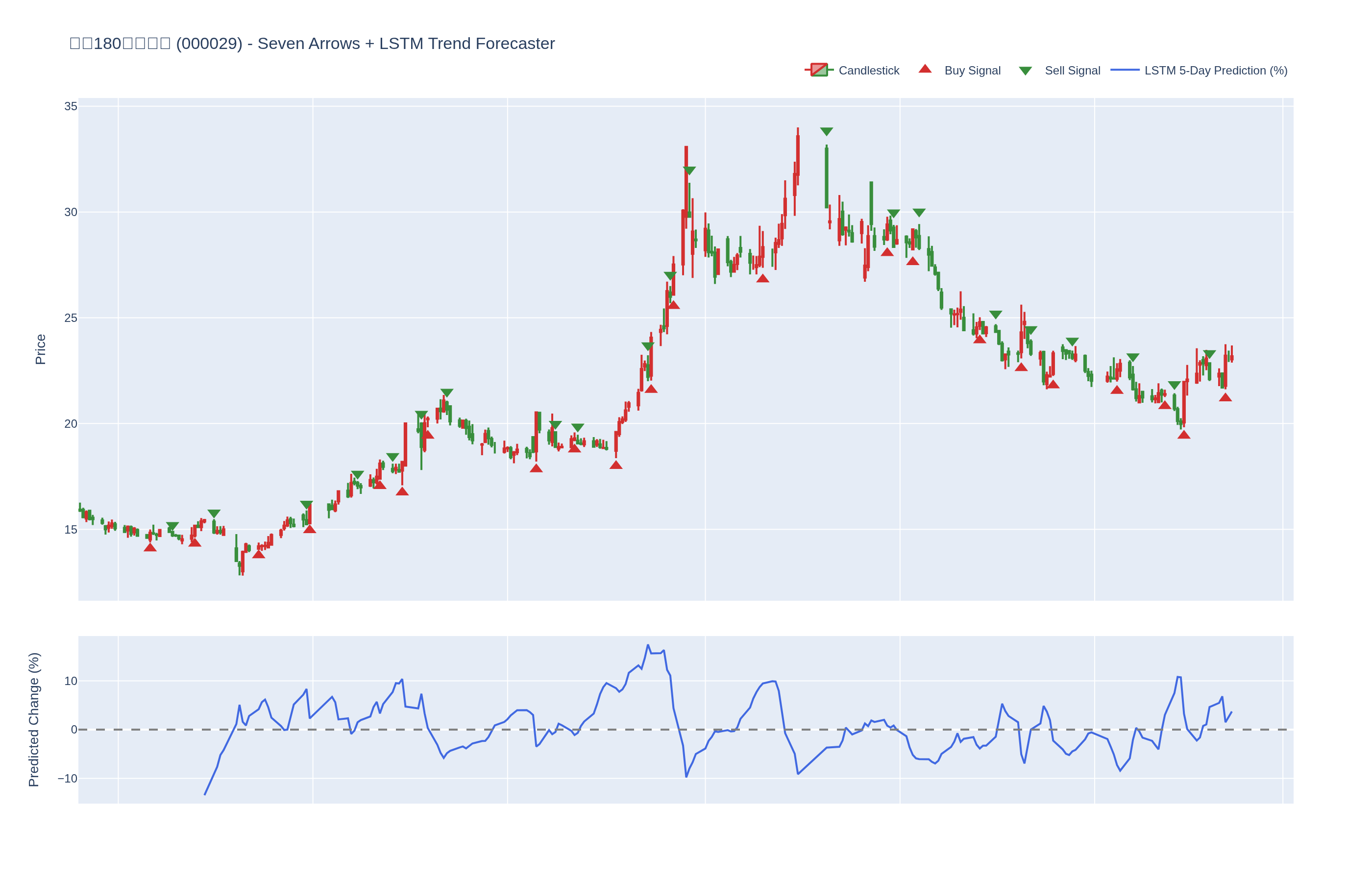 卖出 (Sell): ≤3 向上箭头 或 LSTM 预测未来价格 下跌 (≤0%)