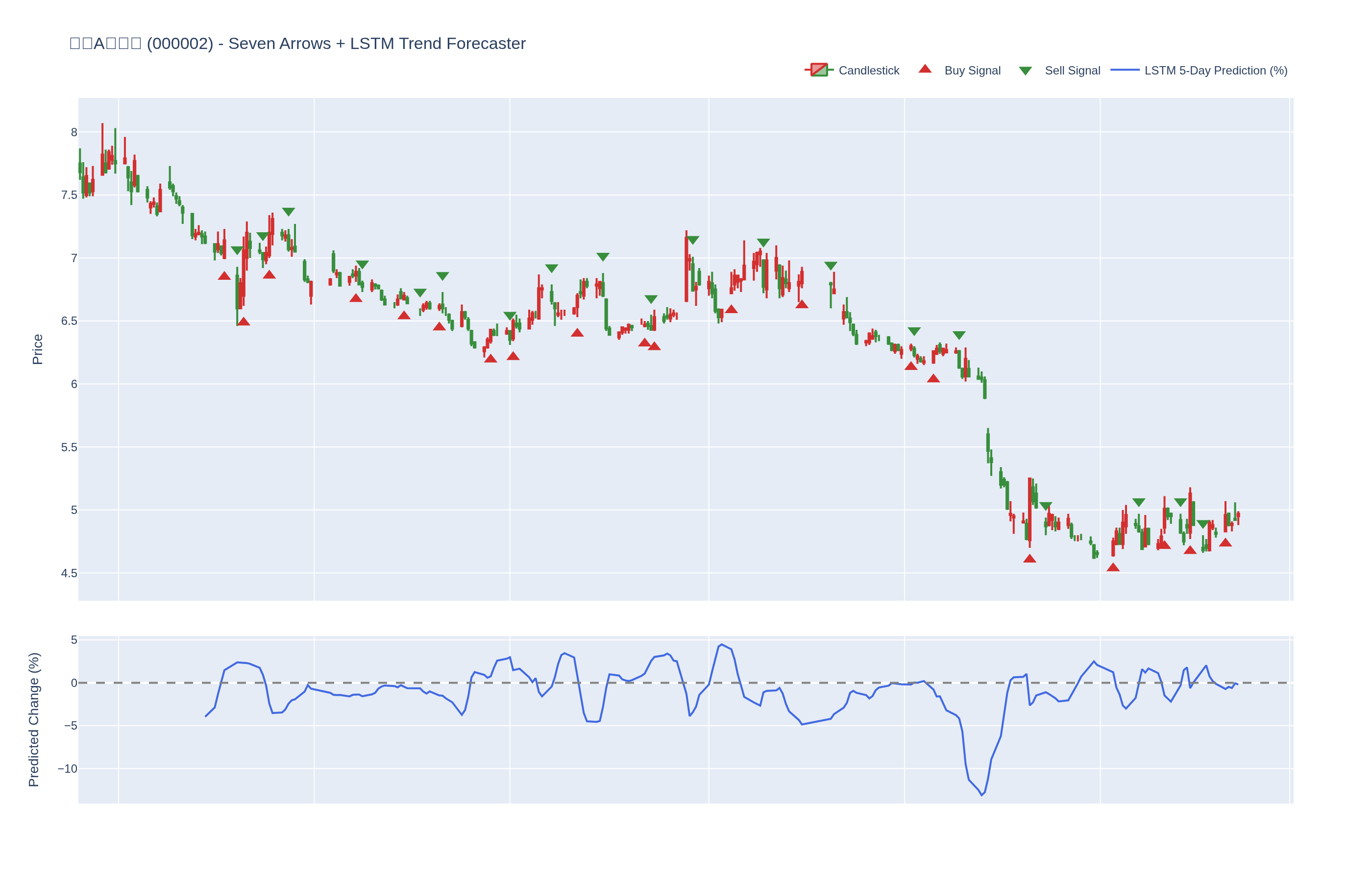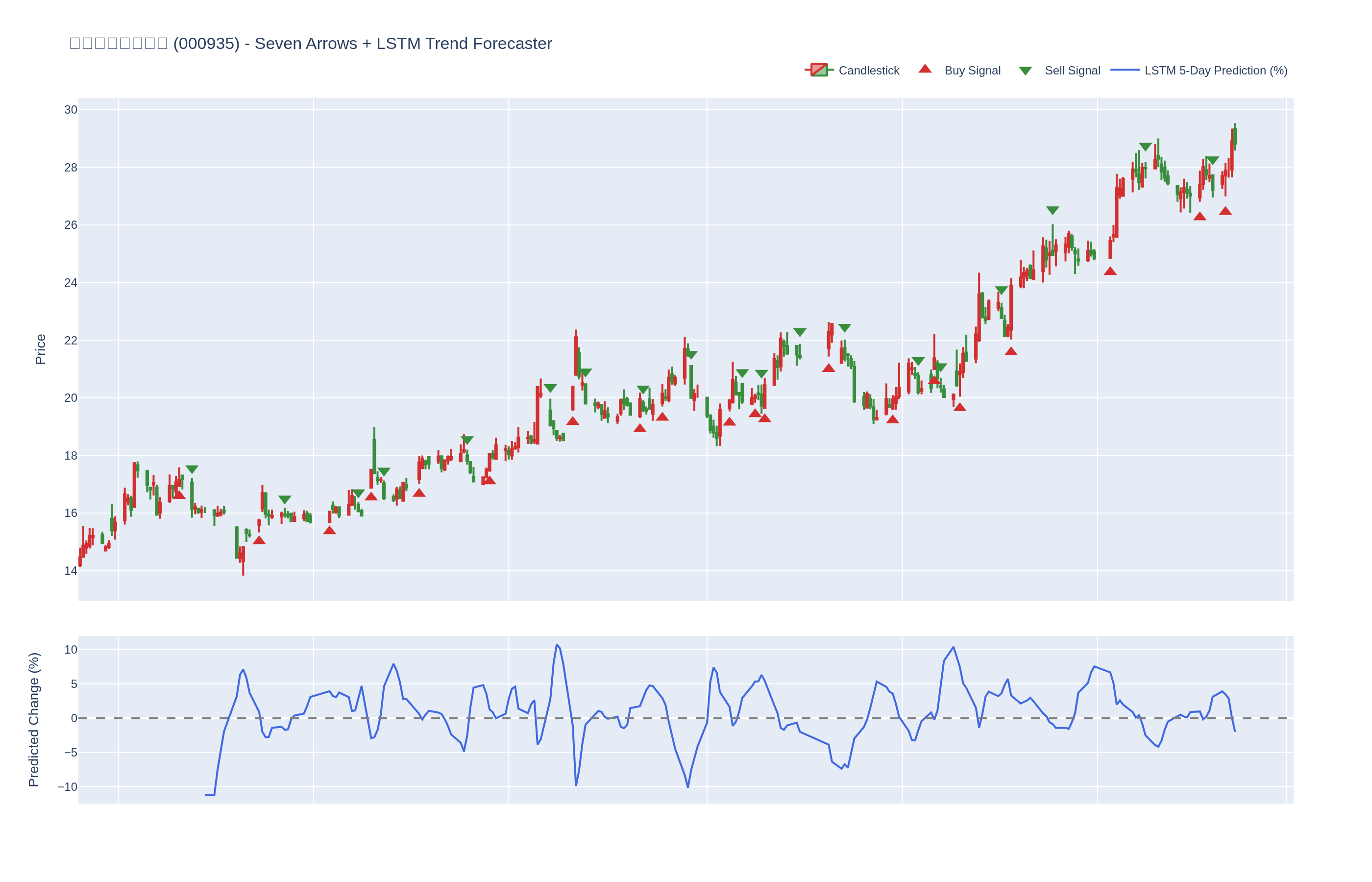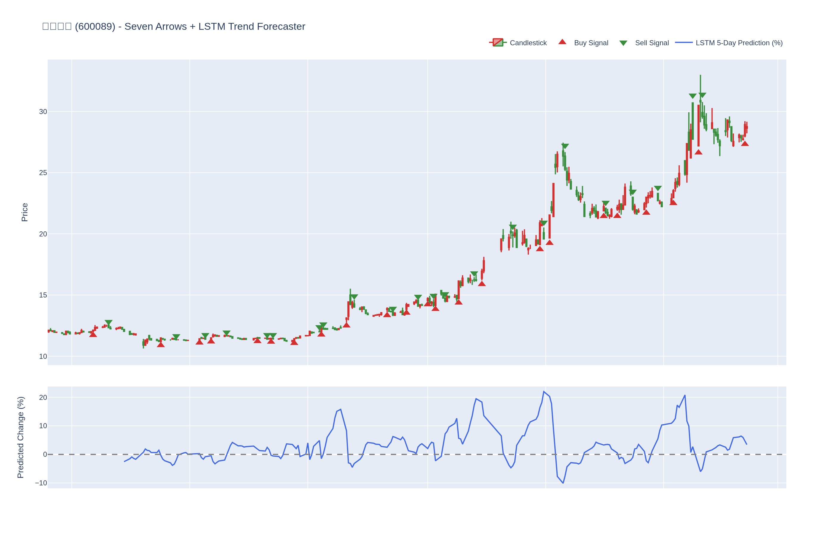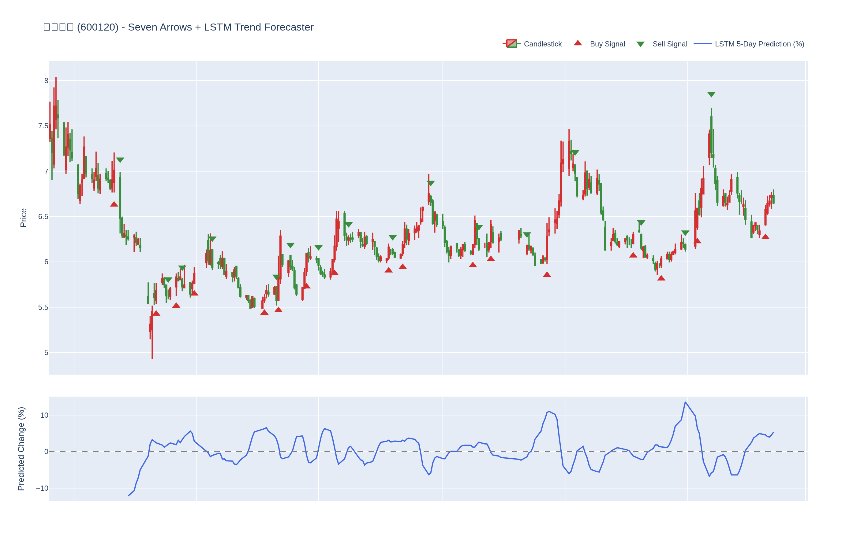 买入 (Buy): ≥6 向上箭头 且 LSTM 预测未来价格 上涨 (>0%)